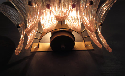 Lampe Murano Murale | 9 Palmettes Roses en Verre | 1 Paire
