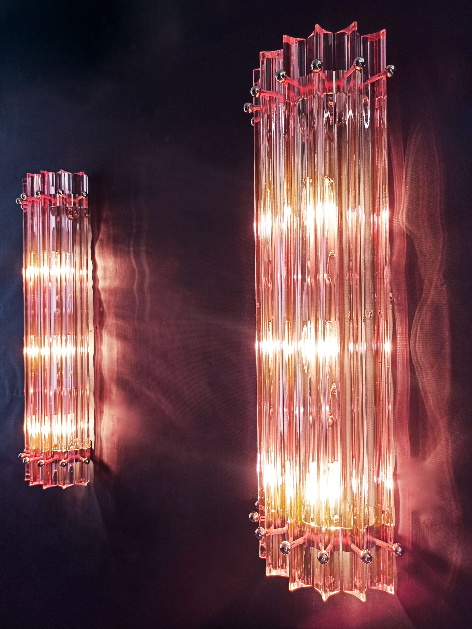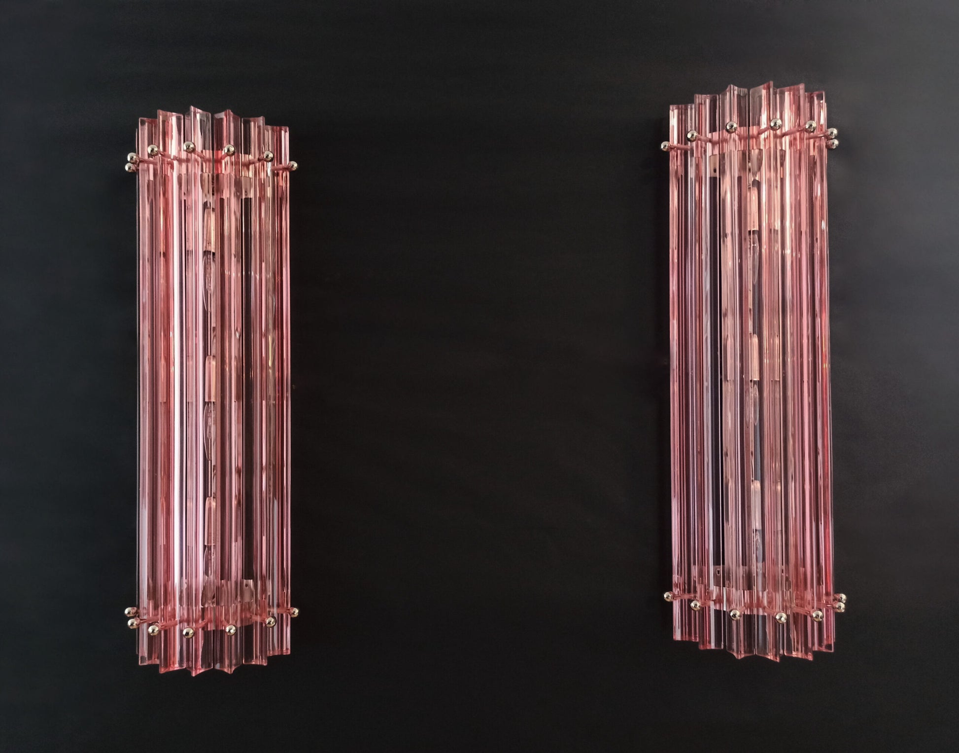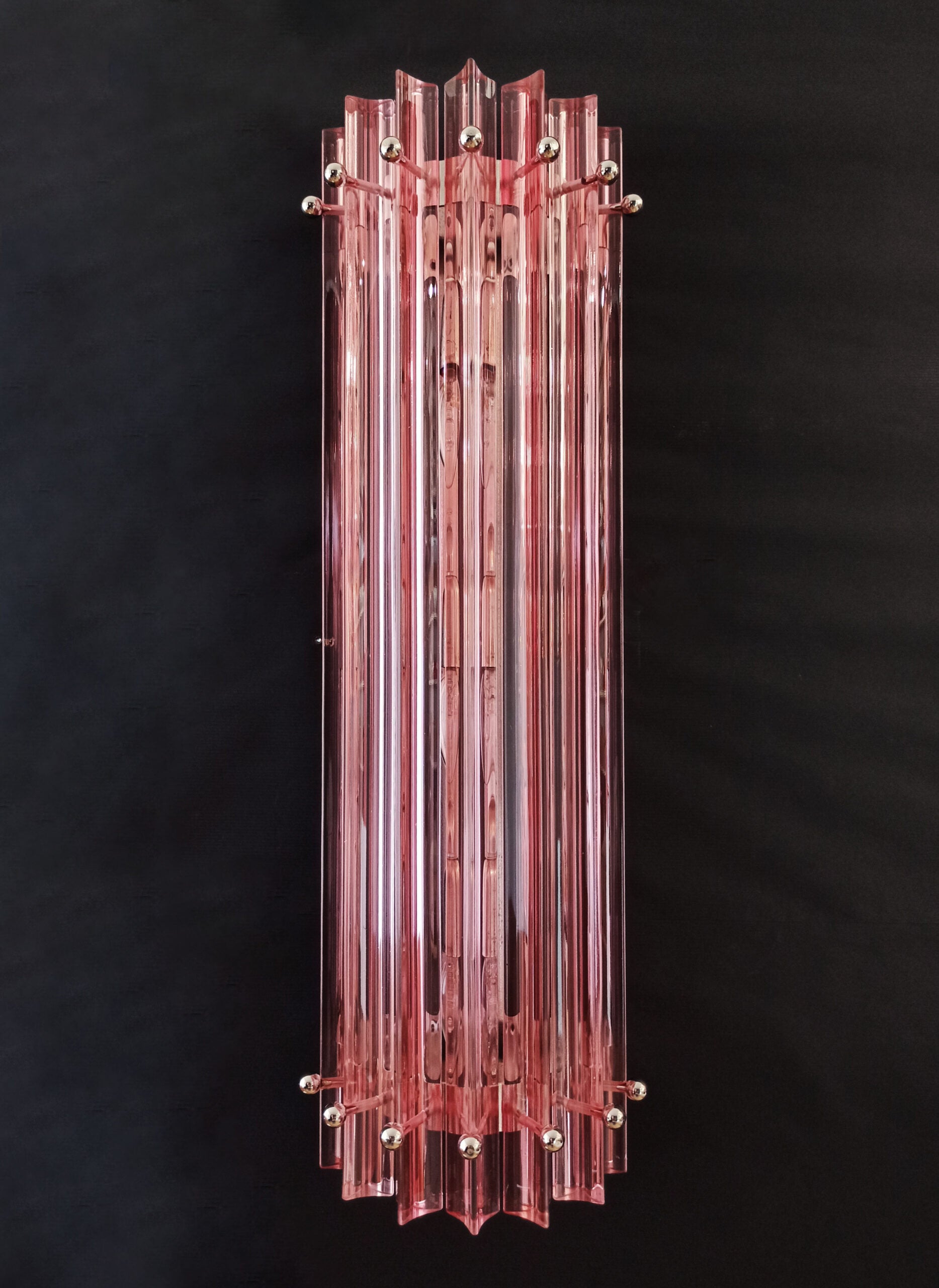 Murano Wall Lamp | 7 Pink Glass Prisms | 2 pcs